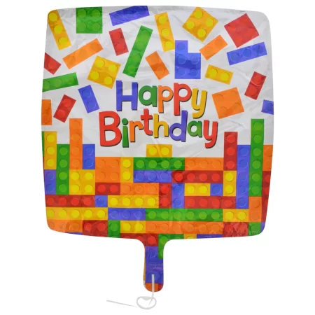 Square Happy Birthday Building Blocks Foil Balloons, 18 in.