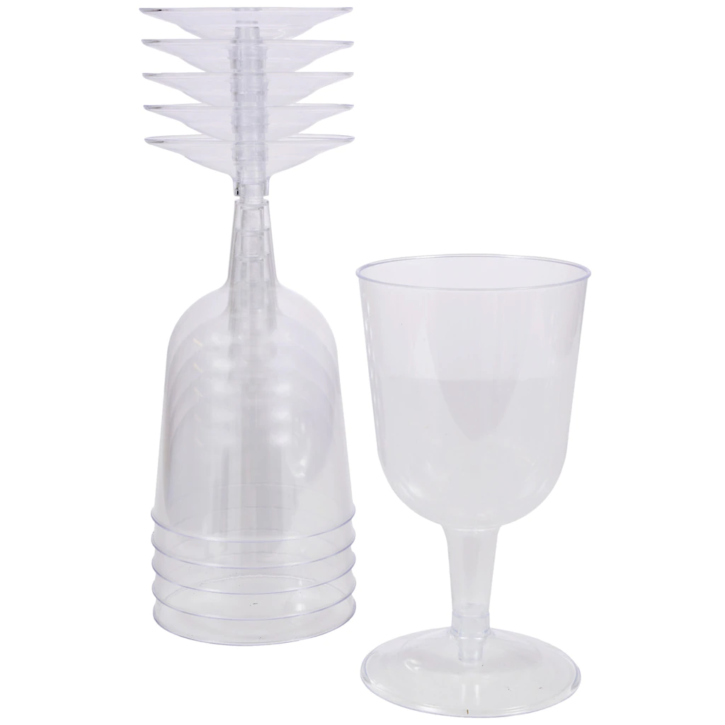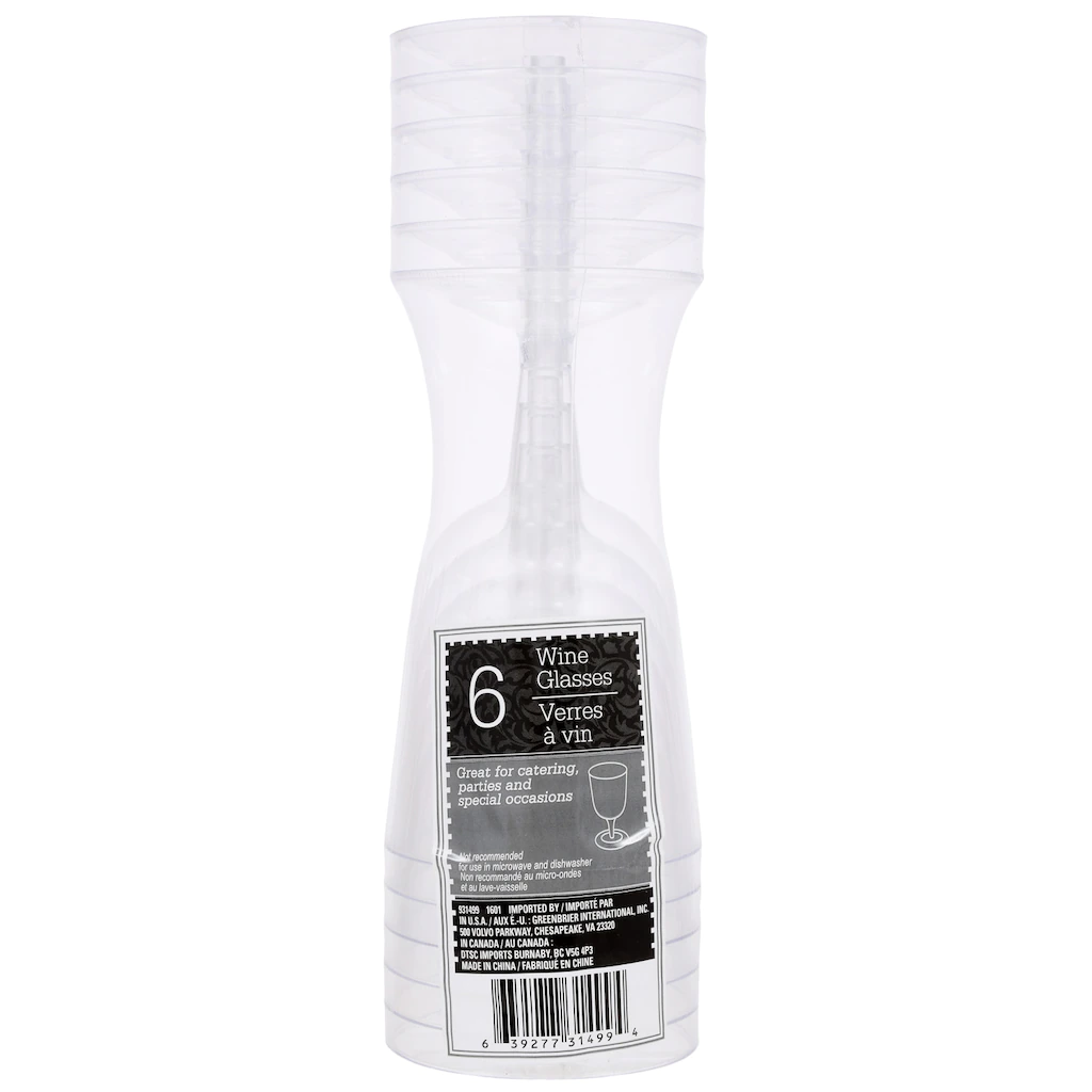 Assortment Details: 6-ct. Packs 6-oz Clear Plastic Wine Glasses.