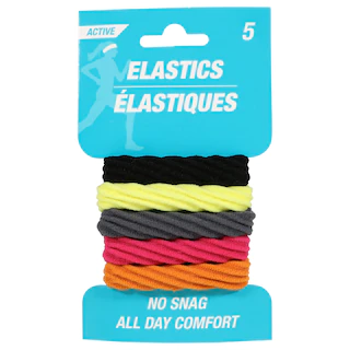 Quality hair ties are a must-have for anyone with long hair. These Adult Athletic Textured Roll-Over Hair Ties are made specifically for snag-free, all-day comfort. Assorted among the two pack designs shown, each 5-ct. pack features textured ponytail holders with a unique ribbed design. Perfect for the gym, for days spent outside, and for working around the house!