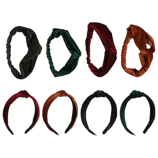 Choose a style that is easy to wear and timeless for everyone. Soft and comfortable headbands and headwraps can be worn for any occasion. They can easily be dressed up or down depending on the situation and add a bit of depth to your outfit. The headbands and headwraps come assorted among the 8 total designs shown: between 2 styles and 4 colors such as black, brown, dark green, and dark red.