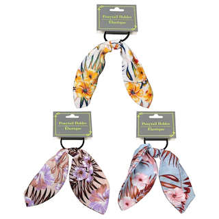 Adult Tropical Floral Patterned Scrunchies, Ponytail Holders, and Head Bands