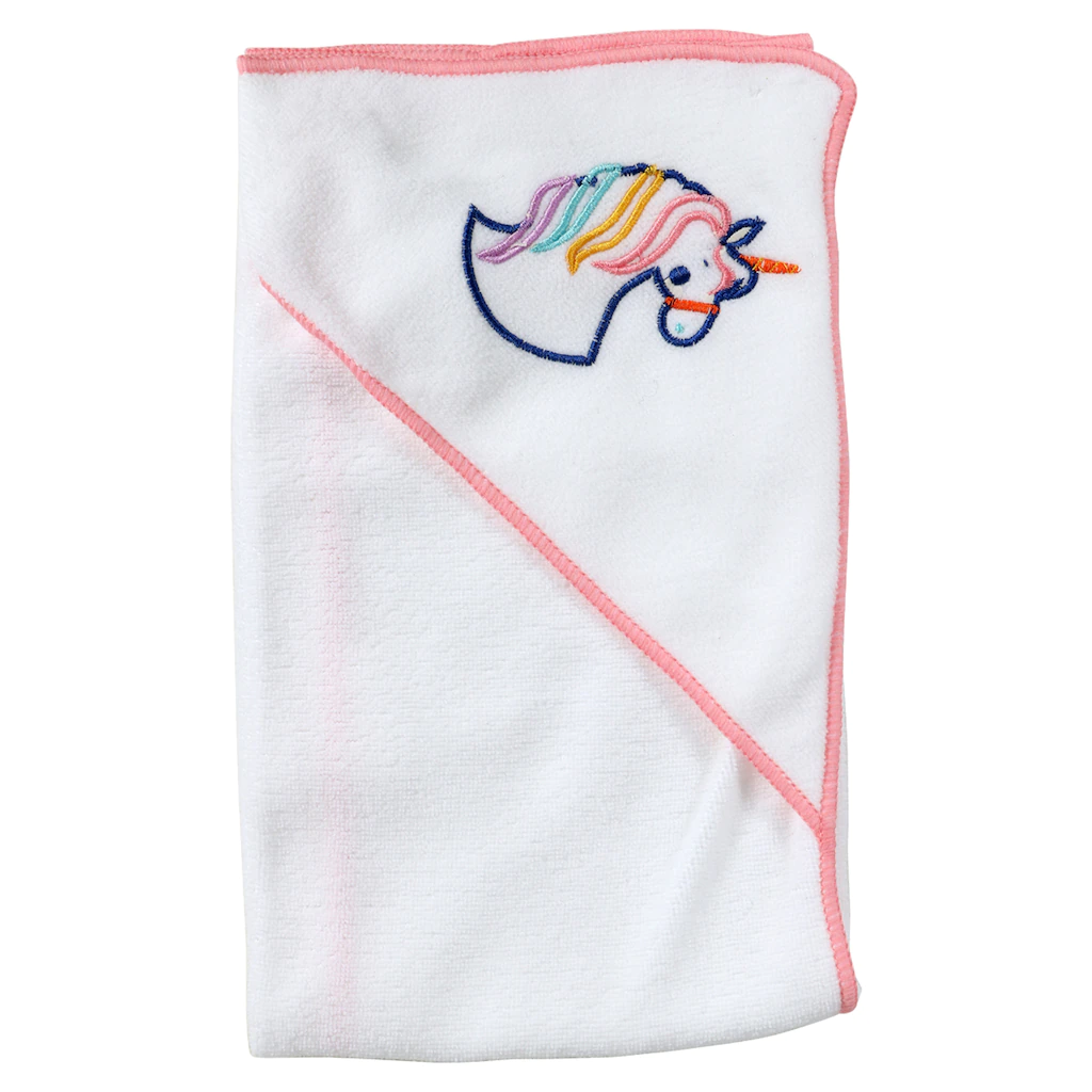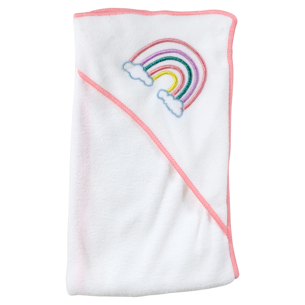 Soft, hooded towels keep baby dry and warm after their bath. Each hooded towel has a colorful boarder and is decorated with sweet characters that are assorted among rainbows, unicorns, whales, and dinosaurs. Hooded towels measure 20×24-in. and are the perfect baby shower gift.