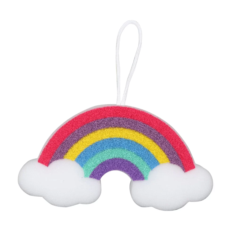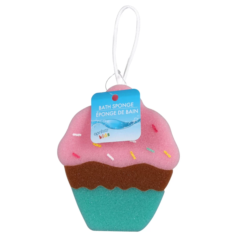 Assortment Details: 6.25×5.125-in. April Bath and Shower® Kids Shaped Sponges assorted between cupcakes and rainbows.