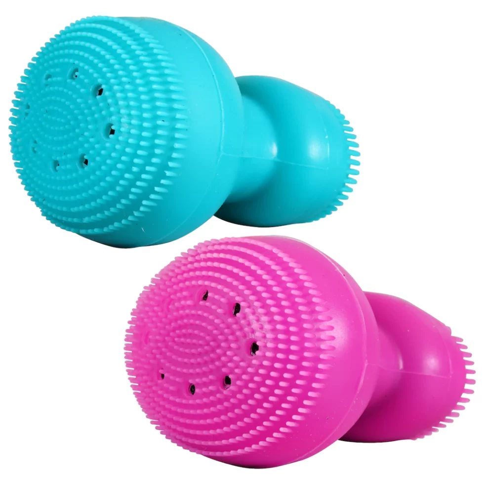 April Bath & Shower® Cleansing Facial Scrubbers are ideal for at-home facials! With a foam interior, these dual-ended silicone scrubbers work with your favorite cleansers or scrubs to help remove impurities from clogged pores. Each 2.5-in. tall scrubber comes in either pink or teal and features a textured oval-shaped head that measures 1.75×2.125 in. Great for use at home and for gifting in care packages and spa kits!