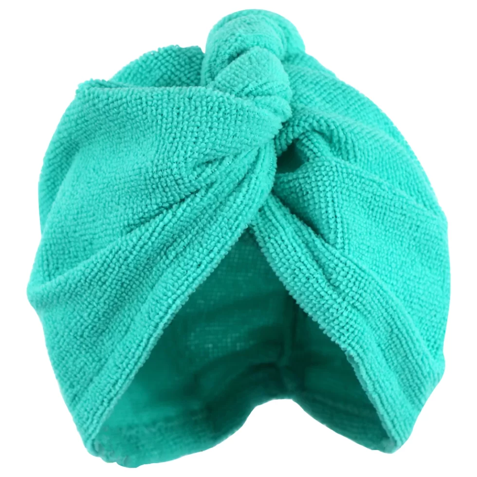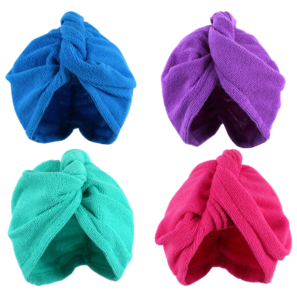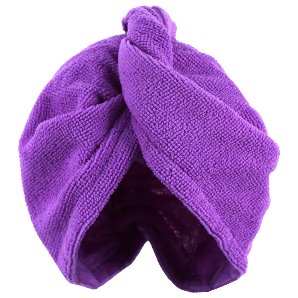 Wrap your wet hair without the weight of a heavy towel… microfiber hair wraps absorb wetness and dry hair fast! Simply place the towel around head and hair, twist, and secure with button that securely holds the wrap in place. With an easy twist & loop technique it will speed up the drying process and save you time to do other things. The wraps come assorted among green, blue, pink, and purple.