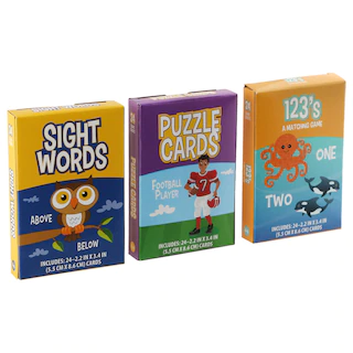 Help your kids learn and allow them to have fun at the same time! Card games come in 3 sets of 3 assorted card games: 9 total games for them to play! Enjoy with friends during sleepovers or game night, share with youth groups, kids camps, and shelters, or use in classrooms and in the home.