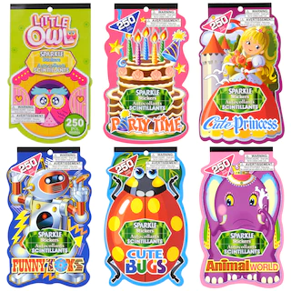 Stickers with a sparkly shine! Kids will love going through these sticker books and finding their favorite sparkling stickers! Each book has 250 stickers and they come assorted among 6 unique titles.