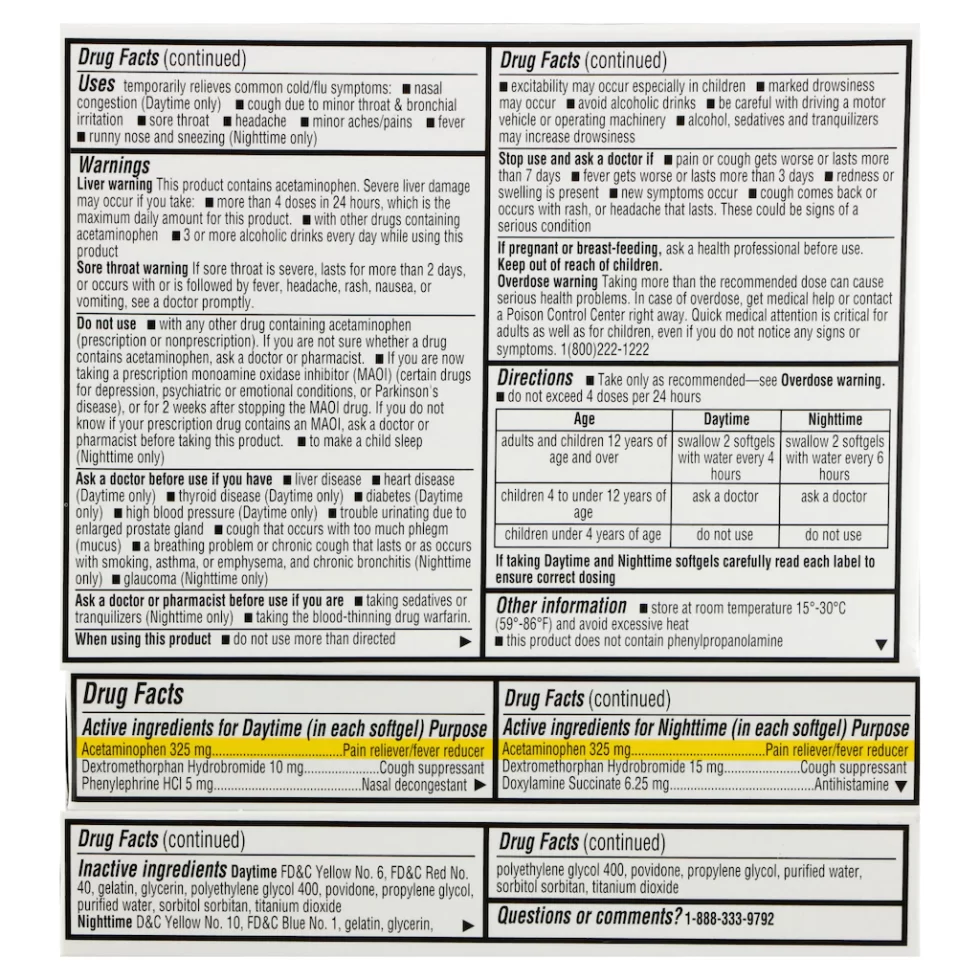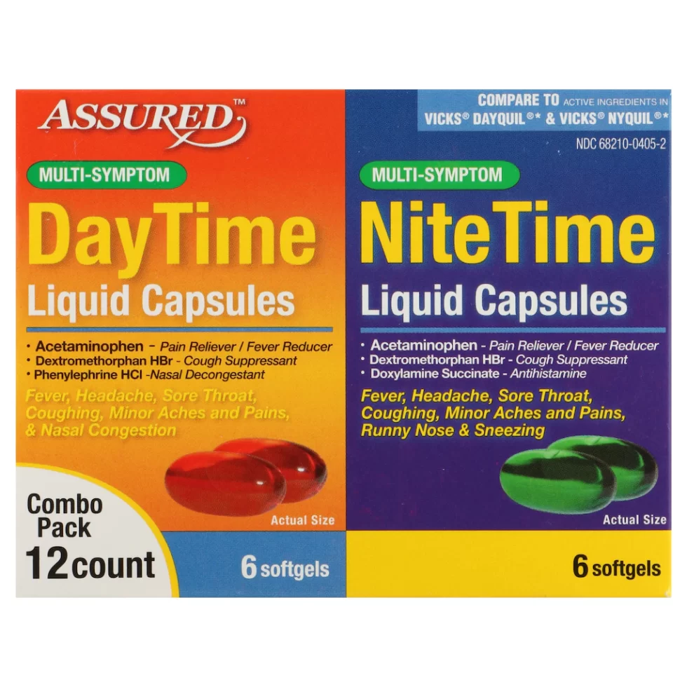 Assortment Details: 12-ct. Packs of Assured™ Multi-Symptom Daytime and Nighttime Liquid Capsules