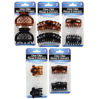 Assortment Details: Basic Solutions™ Claw Hair Clips assorted among 2-ct. and 3-ct. packs in black, brown, and clear