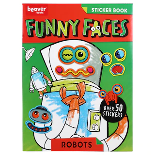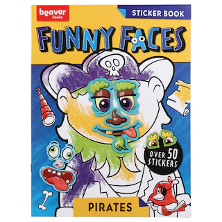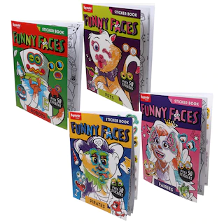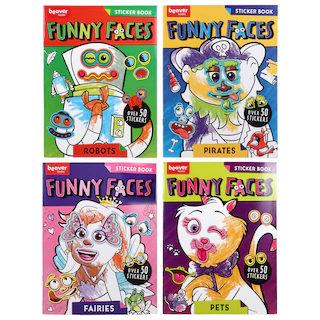 Assortment Details: Beaver Books® 11×8.375-in. Funny Faces Sticker Books assorted among robots, fairies, pets, and pirates.