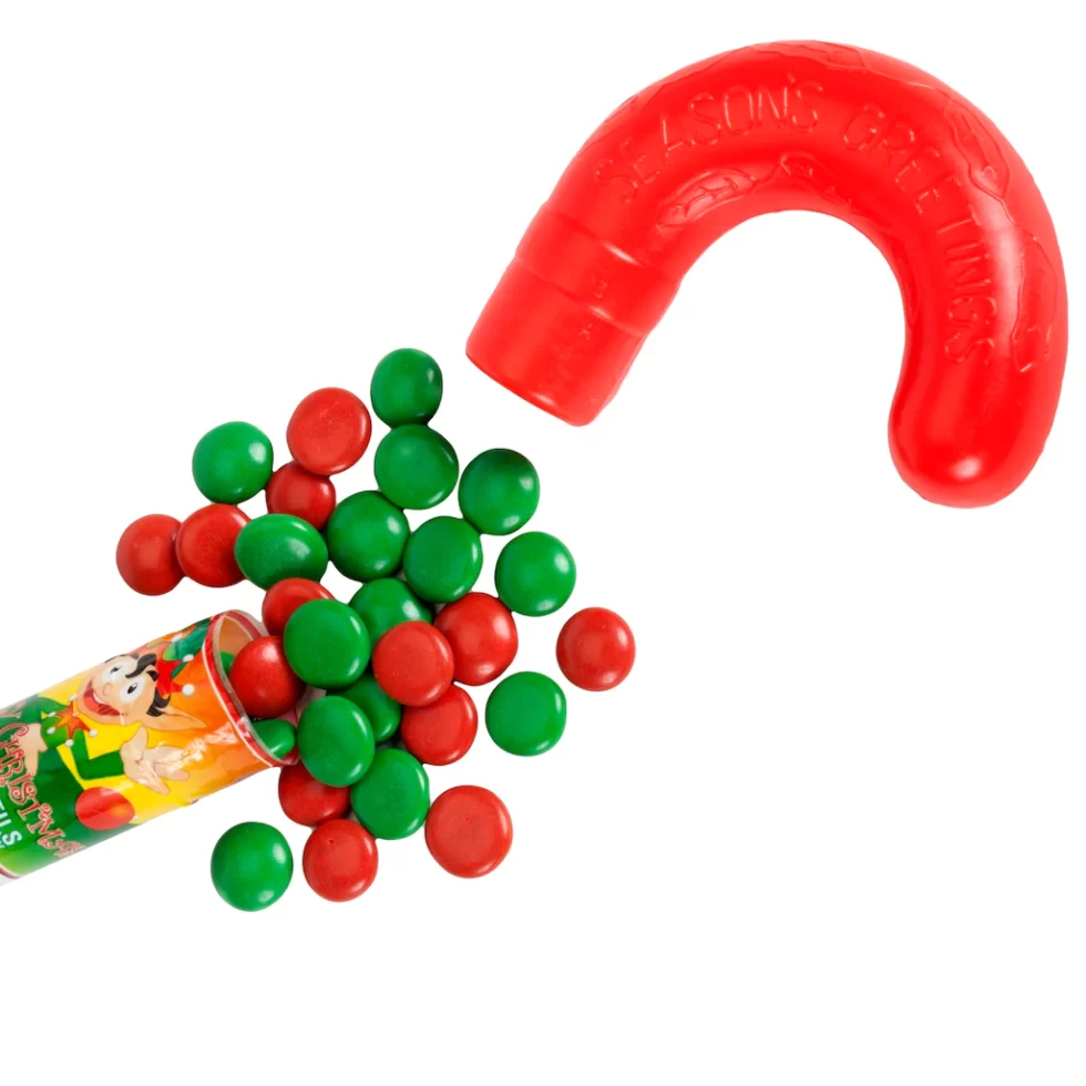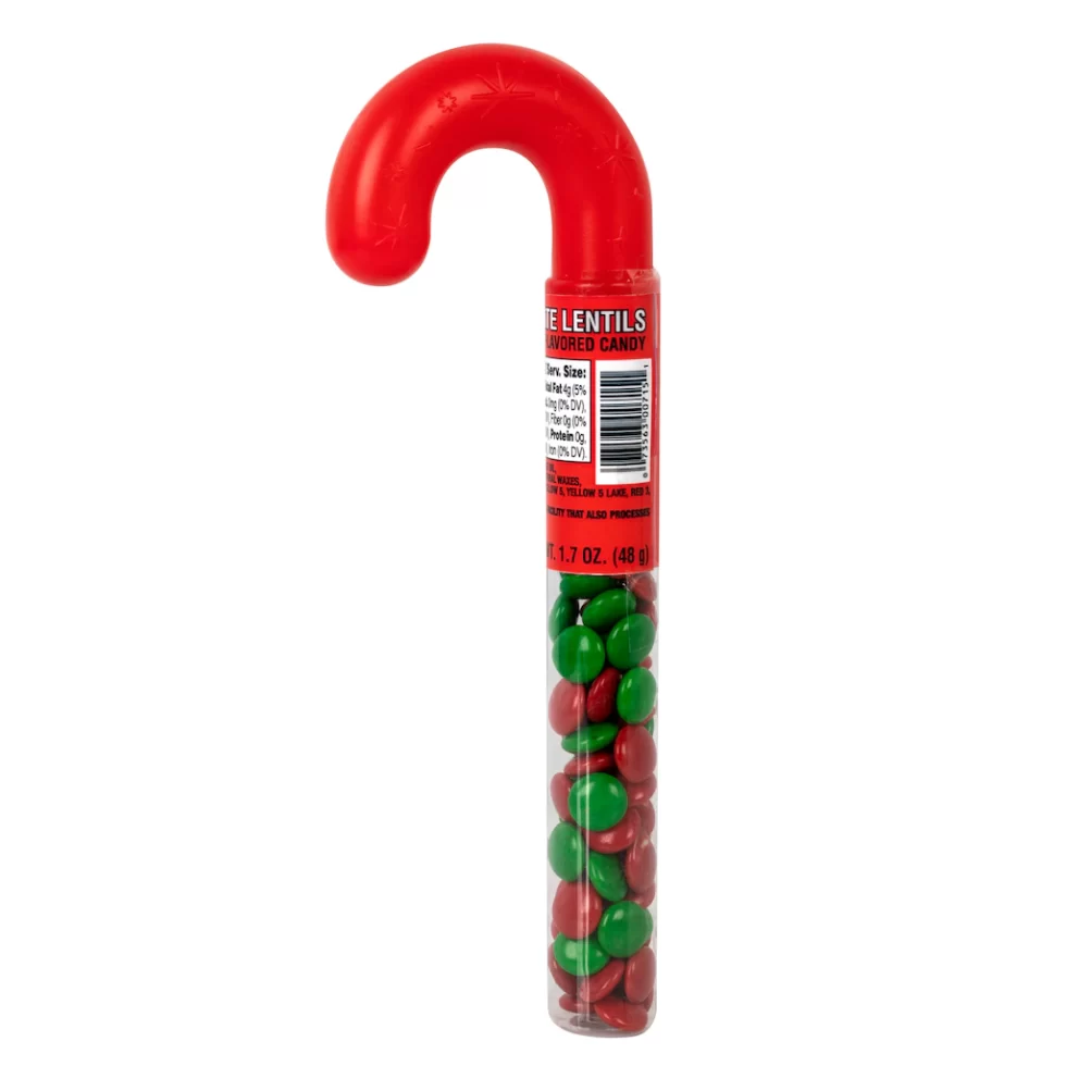 Enjoy a sweet treat as you celebrate the holidays! Each hollow plastic candy cane is filled with delicious chocolate lentils in the holiday colors of green and red. Perfect for stocking stuffers, party favors, goodie bags, prize boxes, and giving to others.