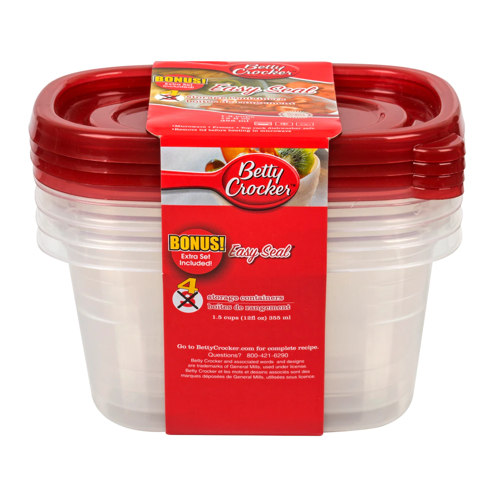 Betty Crocker Easy Seal Rectangular Plastic Storage Containers, 4-ct. Bonus Packs