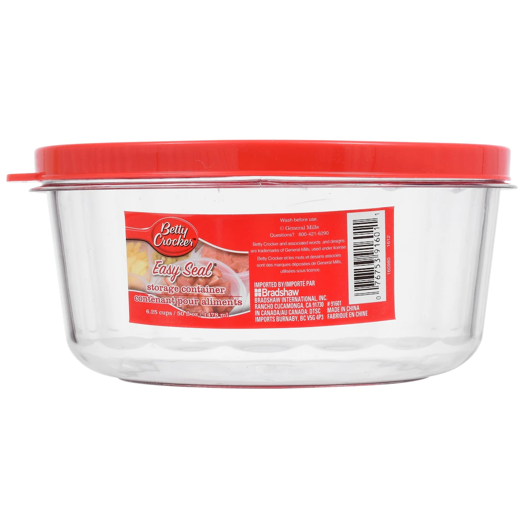Assortment Details: 50-oz. Betty Crocker® Easy Seal Round Storage Containers.