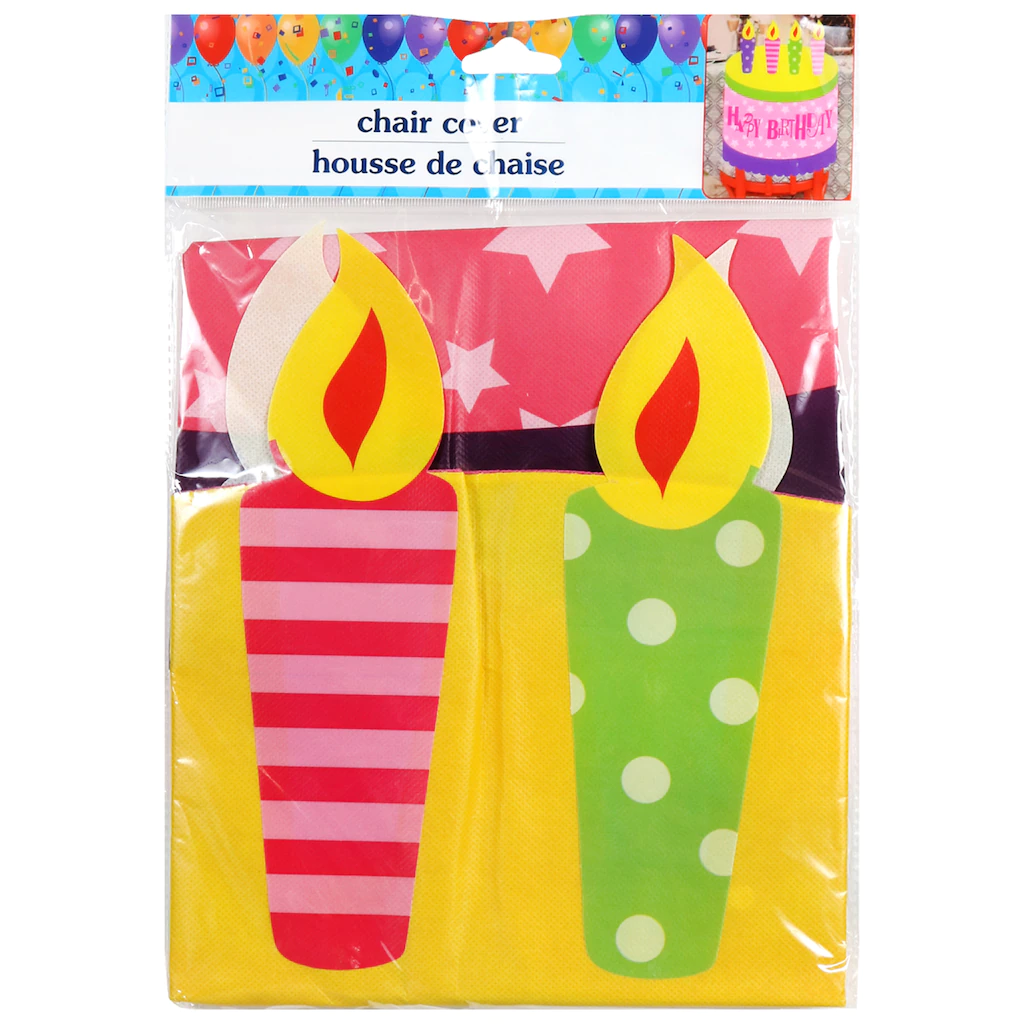 Birthday cake chair covers are an easy and festive way to dress up chairs and delight guests. Felt chair covers fit chair backs up 18-in. wide. Great for caterers, event venues, restaurants, and schools!
