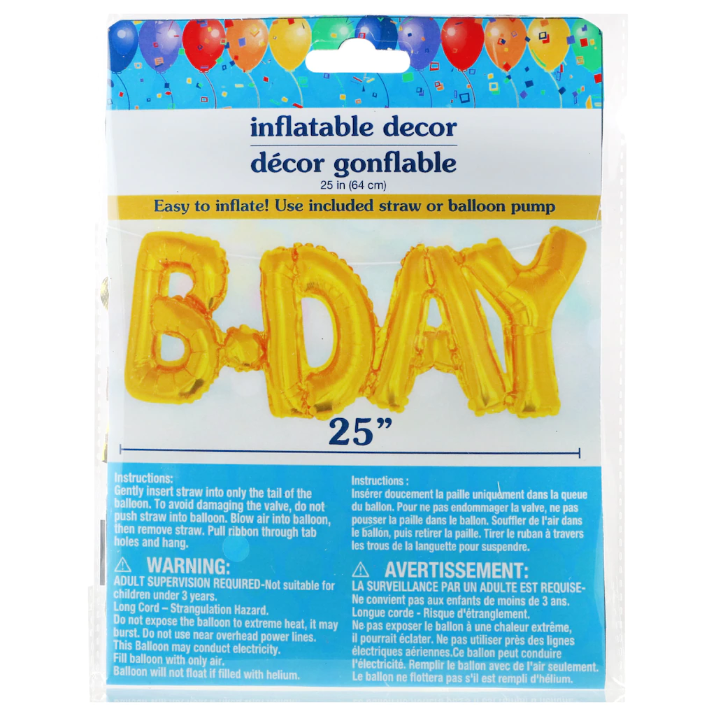 Celebrate your birthday with all the pizazz and flare that such a special day inspires. 25-in. pre-inflated balloons com in a BDAY letter shape and are assorted between gold and silver. They look incredible tied to the back of the chair of the birthday boy or girl, or even scattered throughout the party venue. Balloons arrive uninflated; however, foil balloons purchased online can be inflated at your local Dollar Tree store at no additional cost. Due to the the nature of helium supplies, it is important to please schedule with the store manager so as to make sure the store has the helium necessary to fill your balloons. Also, please present a copy of your purchase receipt when entering the store to have your balloons inflated. Ages 3+.