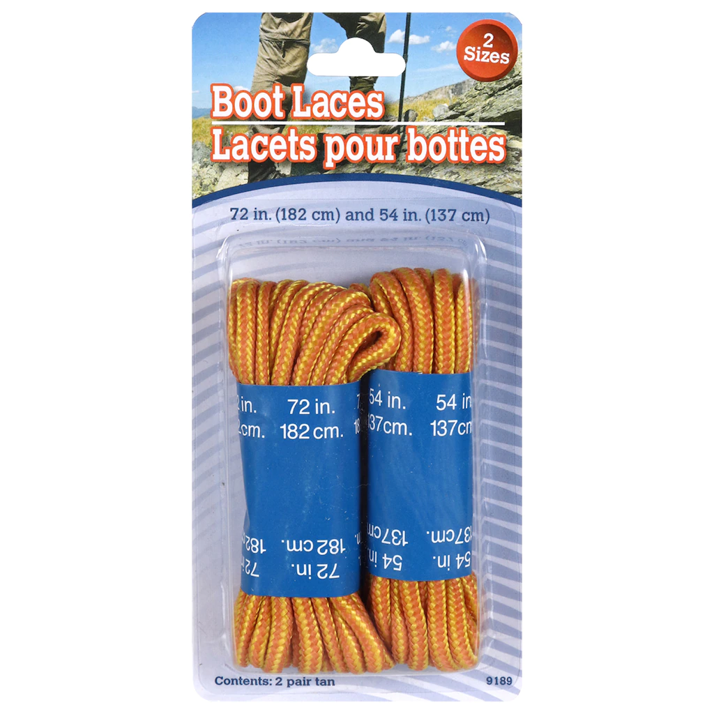 Assortment Details: 2-ct. packs of Boot and Work Shoe Brown Laces including one set that is 72-in long and a second set that is 54-in long