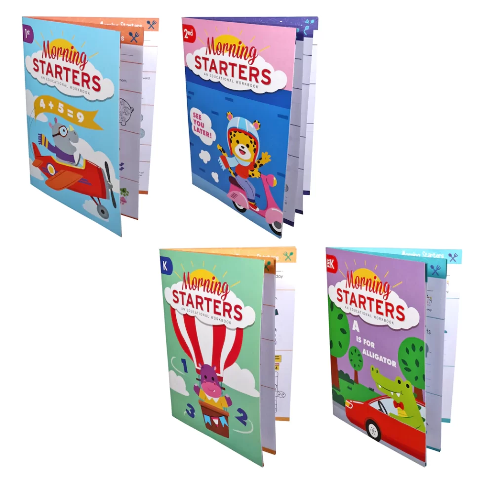 Assortment Details: Breakfast Bites for Your Brain Educational Workbooks assorted among Pre-K, kindergarten, 1st grade, and 2nd grade