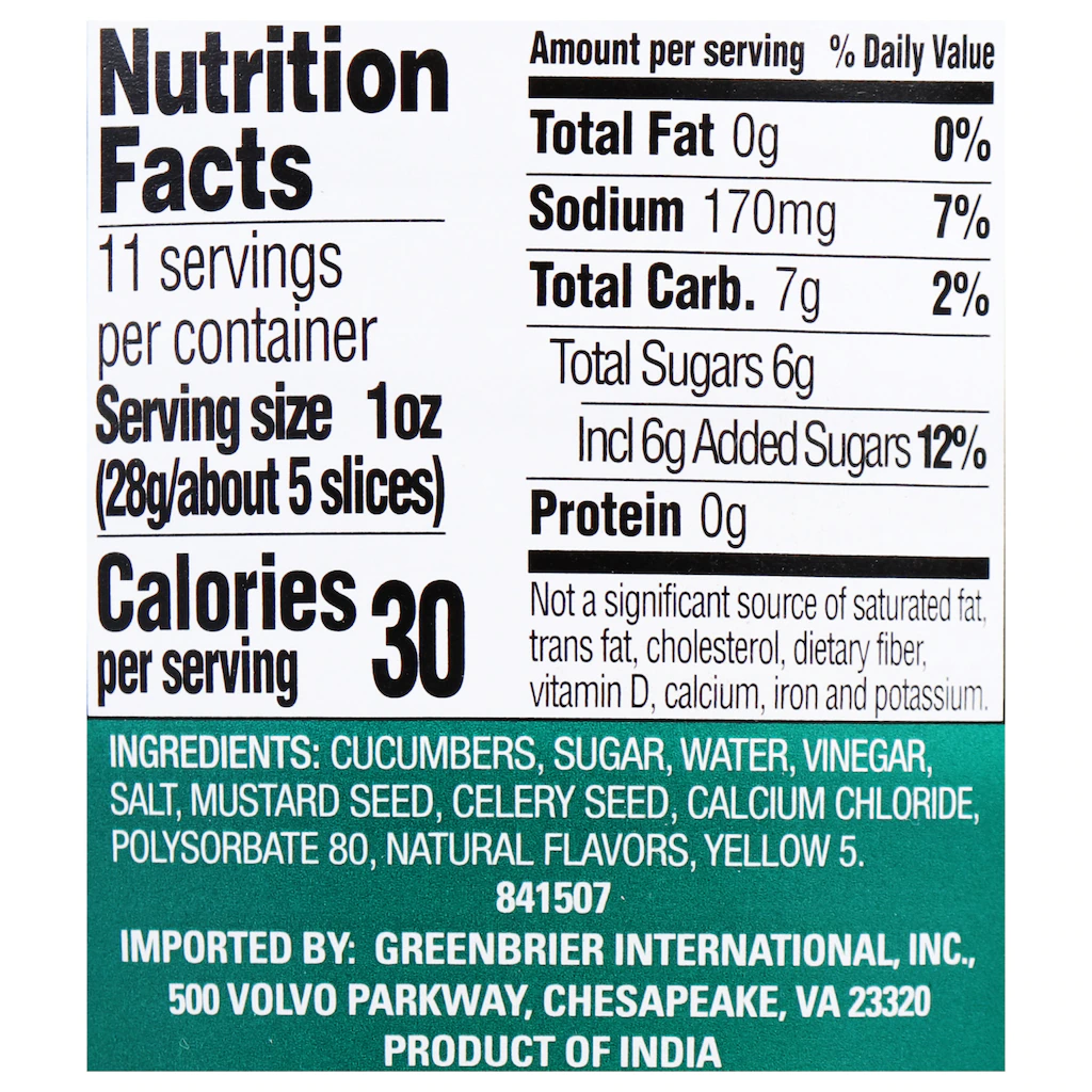 You’ll love the sweet taste (and crunch!) of Breckenridge Farms™ Bread & Butter Pickle Chips on your sandwich or burger! Each 17-oz. jar contains 11 servings of these fat-free, gluten-free bread and butter chips. A great addition to your cookout condiment bar, concession stand, or snack stash.