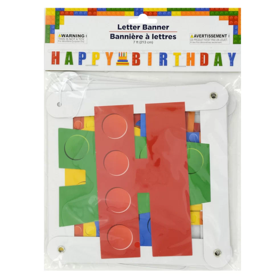 Assortment Details: 7 ft. Bricks Happy Birthday Letter Banners. Each letter measures 6×4 in.