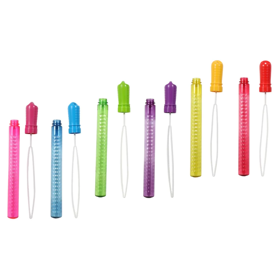 Assortment Details: 12×1-in. Bubble Fun™ Bubble Wands assorted among pink, blue, green, purple, yellow, and red