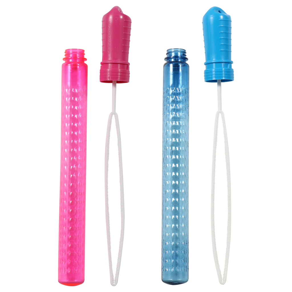 Play time is now! Fun bubble wands in colorful bottles will entertain the kids for hours and hours. These 4-fl.oz. bottles come assorted among pink, blue, green, purple, yellow, and red. Great for home use, outdoor picnics or barbecues, play time in parks, and more. Ages 3+.