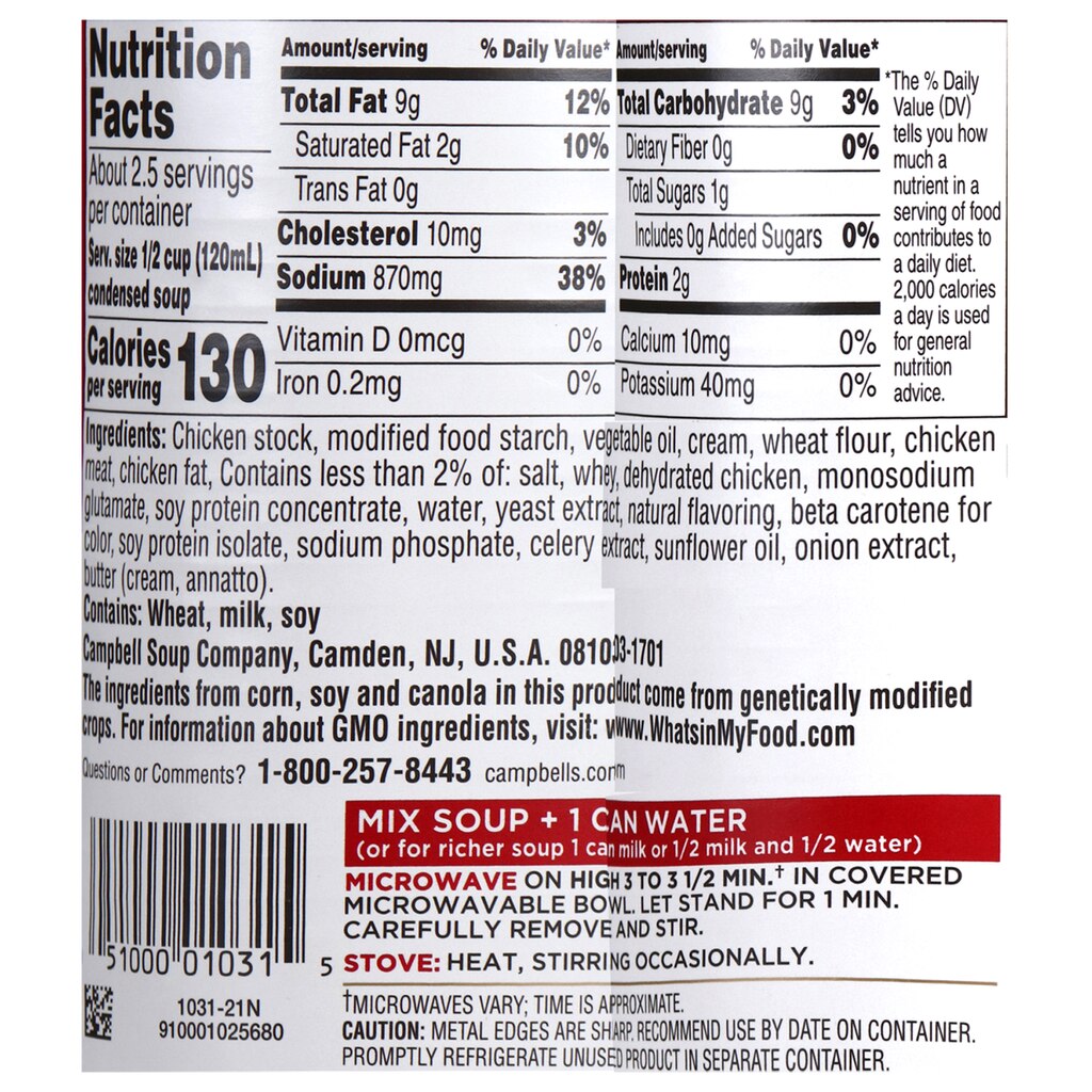 Assortment Details: 10.75-oz. Cans of Campbell’s® Cream of Chicken Condensed Soup