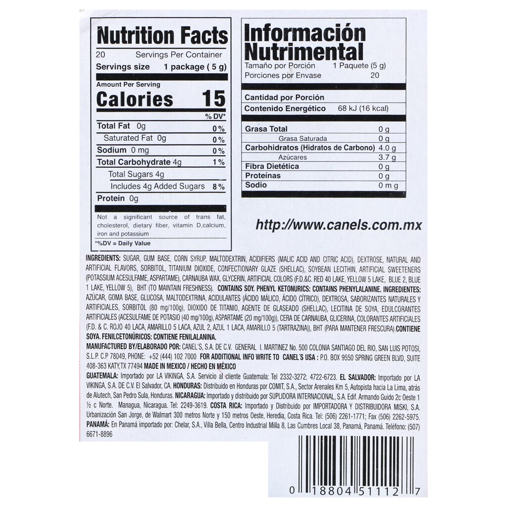 Assortment Details: 3.53-oz. Canels™ Fruit Tasting Gum assorted among cherry, banana, grape, and apple flavors