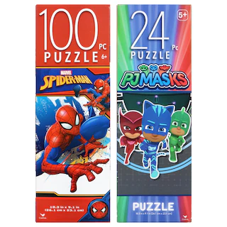 Spend a rainy day with your favorite cartoon friends and superheroes! These 100-pc., fully interlocking puzzles come assorted among DC Comics® Batman, Dreamworks® Trolls™, Disney-Pixar® Soul, Disney® Raya and the Last Dragon, Disney® Mickey Mouse & Friends™, and two different Disney® Princess puzzles and measure 9.125×10.375-in. when finished. Ideal for family nights! Ages 6+. Assortment will vary.