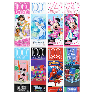Assortment Details: 9.125×10.375-in. 100-pc. Cardinal® Licensed Character Puzzles assorted among DC Comics® Batman, Dreamworks® Trolls™, Disney-Pixar® Soul, Disney® Raya and the Last Dragon, Disney® Mickey Mouse & Friends™, and two different Disney® Princess puzzles. Assortment will vary.