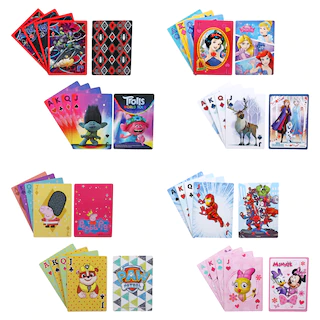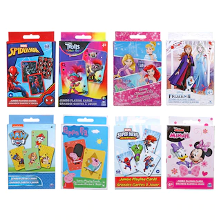 Assortment Details: Cardinal® Licensed Characters Jumbo Playing Cards assorted among Disney® Minnie Mouse, Disney® Mickey Mouse, Disney® Hatchimals™, Disney® Princesses, Nickelodeon™ Paw Patrol™, Disney® Tangled, Disney-Pixar® Incredibles 2, Disney® Frozen, and Marvel® Spider-Man™. Assortment will vary.