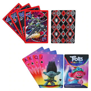 Kids will love playing card games with these large cards decorated with their favorite characters! Jumbo-size cards are easy to read and fun to play. Decks are assorted among Disney® Minnie Mouse, Disney® Princesses, Dreamworks® Trolls™, Disney® Frozen II™, Nickelodeon™ Paw Patrol™, Peppa Pig®, Marvel® Superhero Adventures, and Marvel® Spider-Man™. Perfect for gifts, prizes, birthday party favors, and family game night. Assortment will vary.