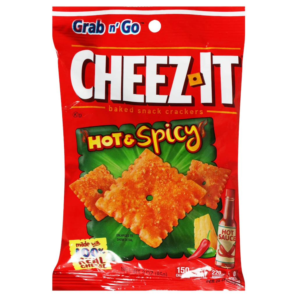 Assortment Details: 3-oz. Bags of Cheese It Grab N Go Hot & Spicy Crackers