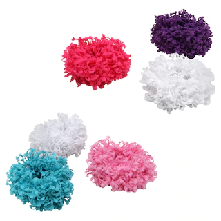 Keep your hair tied back in the most stylish way possible. Fuzzy hair scrunchies come in a wide assortment of colors and they all come in 3-ct. packs. These pack colors include white, light pink, and aqua blue, or hot pink, white, and purple. Ideal for home use, hair salons, beauty stores, and costume dress up.