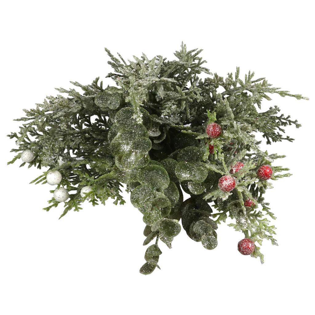 Create festive holiday arrangements with this gorgeous frosted faux greenery! Perfect for adding the finishing touch to your wreath, mantel decor, and so much more. They come assorted among the 4 elegant styles shown.