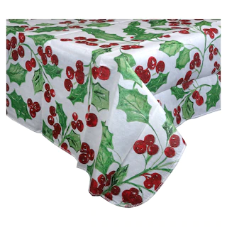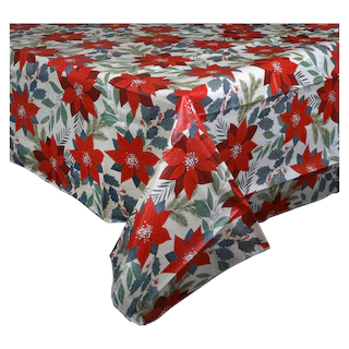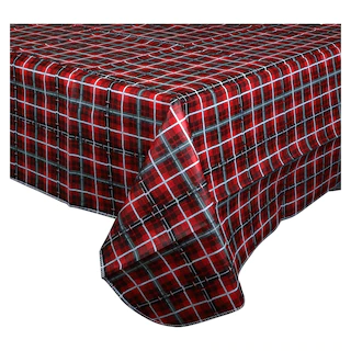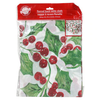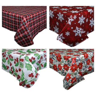 Assortment Details: Christmas House® Flannel-Backed Vinyl Tablecovers assorted among the festive holiday designs shown and between two sizes: 52×52 in. and 52×70 in.