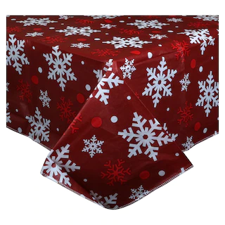 Set the table for festive fun this Christmas! Easy-care vinyl tablecloths protect your tables from drips and spills and help keep holiday cleanup to a minimum – just wipe with a damp cloth when festivities are through. Plus, they have a 100% polyester backing that helps protect your table from hot dishes and water rings. Flannel-backed vinyl tablecloths come assorted among the festive holiday designs shown and between two sizes: 52x52in. and 52×70 in..