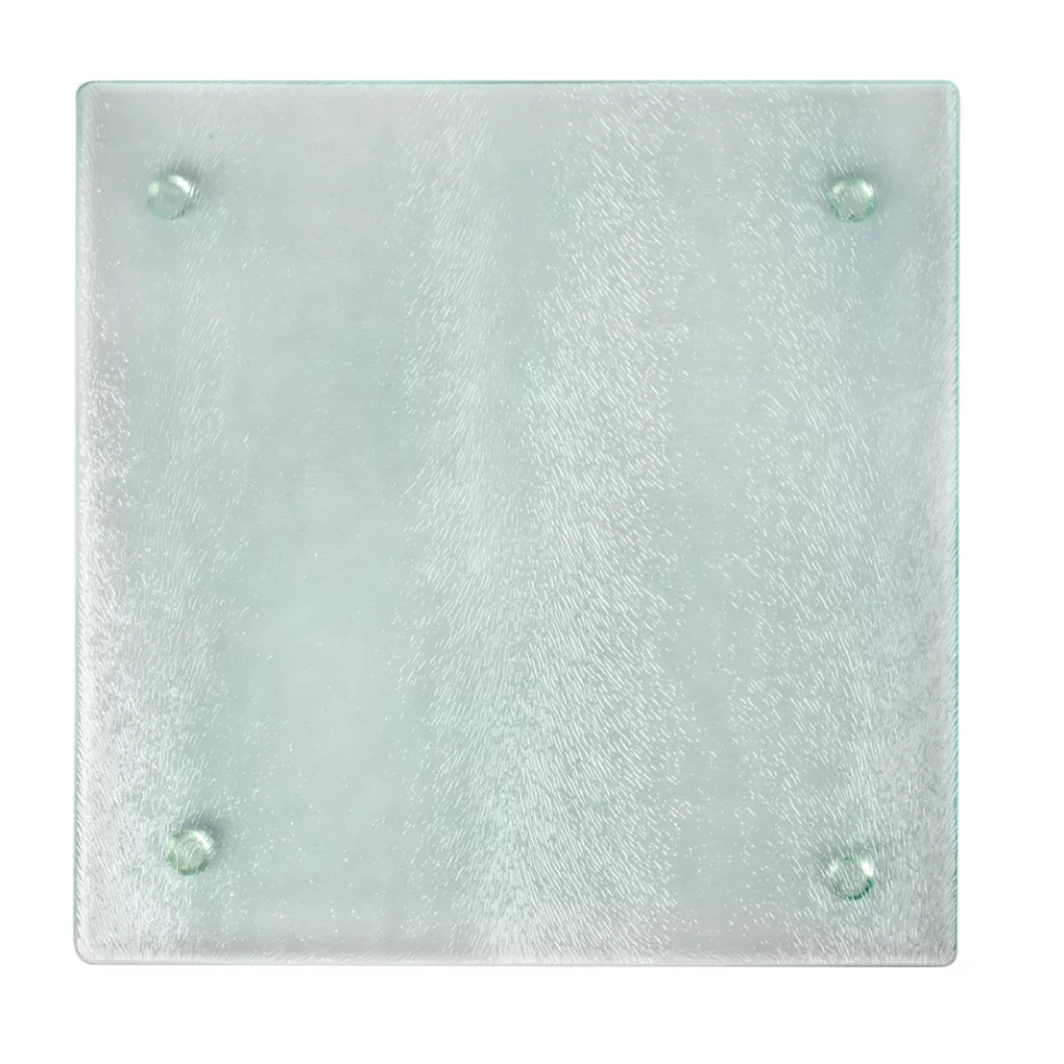 Assortment Details: 7.75×7.75-in. Clear Glass Square Cutting Boards