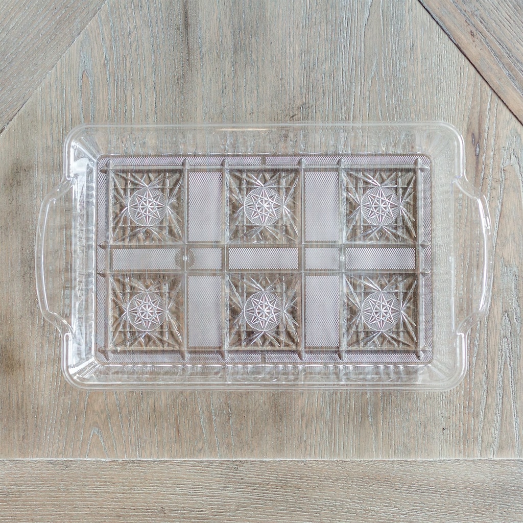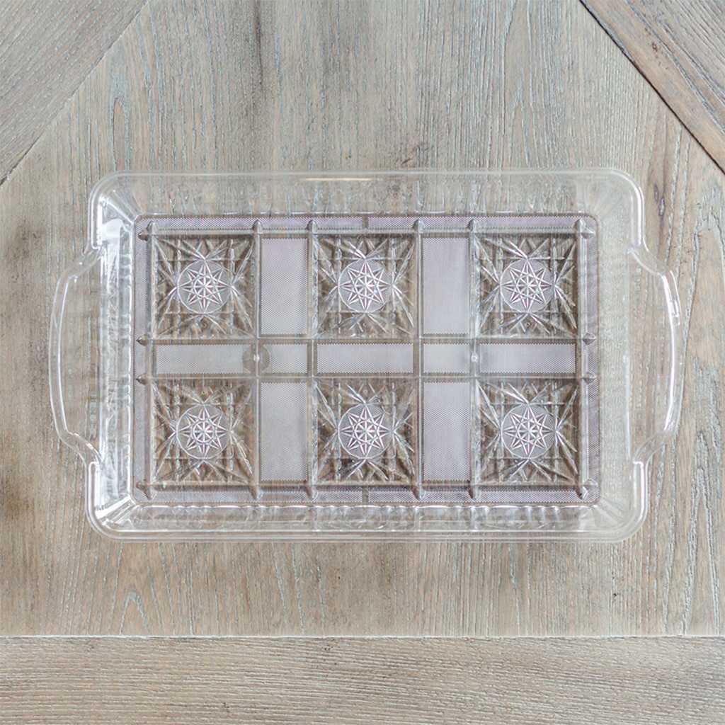 Elegantly detailed plastic tray is perfect for serving appetizers, desserts, cheese and crackers, and hors d’oeuvres at parties, banquets, and events. A must-have piece for event planners, restaurants, caterers, and banquet facilities.