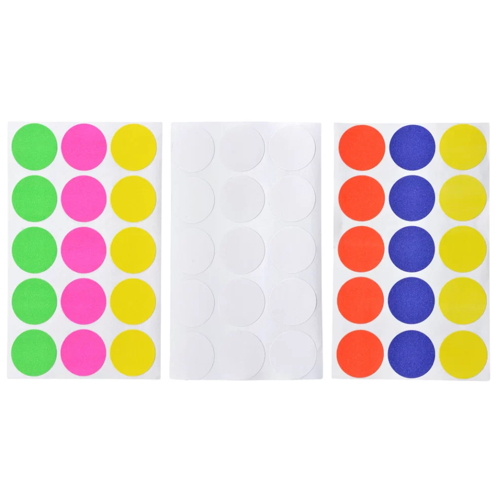 Self-adhesive paper dots are perfect for all your sorting needs. .75-in. round stickers are perfect for pricing items for sale, color coding items that need to be sorted, or even color coding the kids’ lunches! Plus, they are designed to be written on so they also make perfect self-adhering notes or labels.