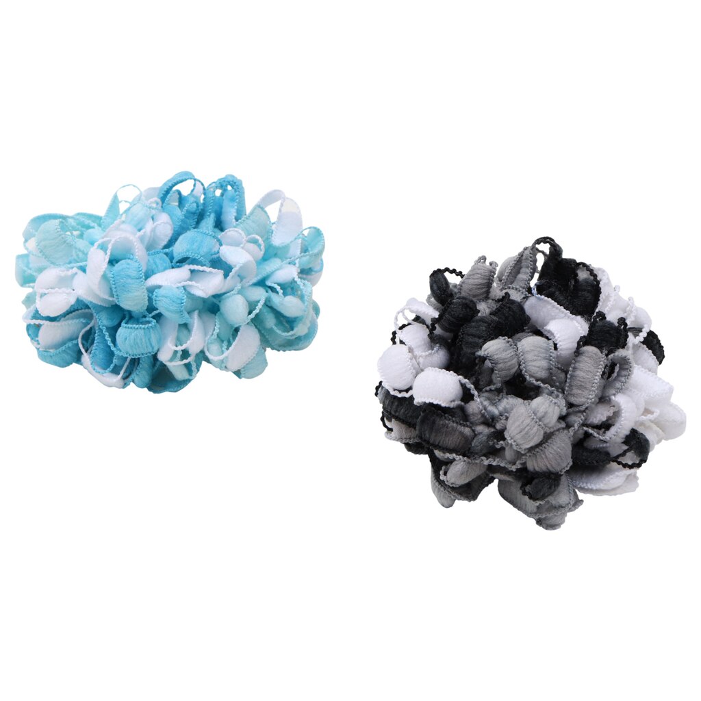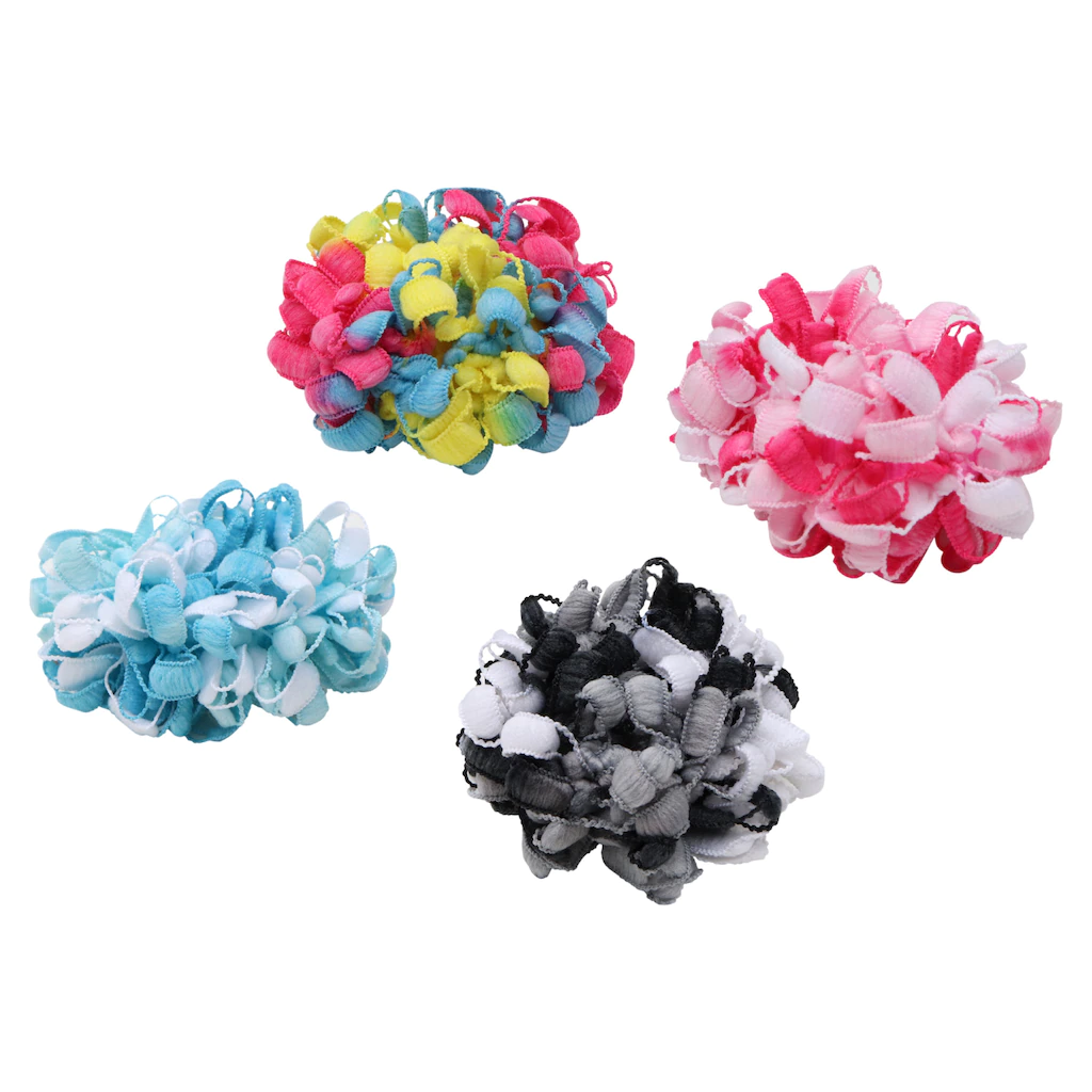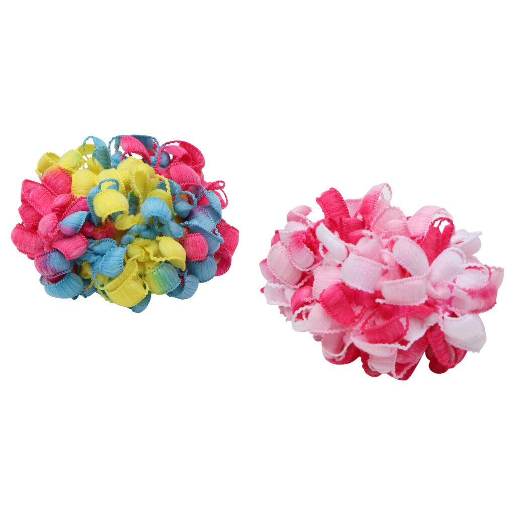 Care for your child’s hair with stylish colorful scrunchies. These child-sized scrunchies come in 2-ct.packs that are assorted between pink and multicolored, and blue and black/white. They can be worn for special occasions to match an outfit and for everyday use.