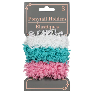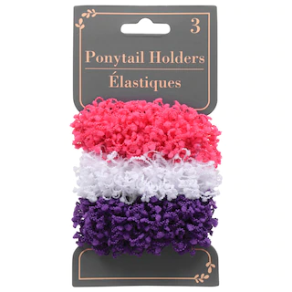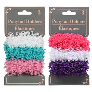 Assortment Details: 3-ct. Packs of Colorful Ponytail Holders assorted between the 2 pack designs shown