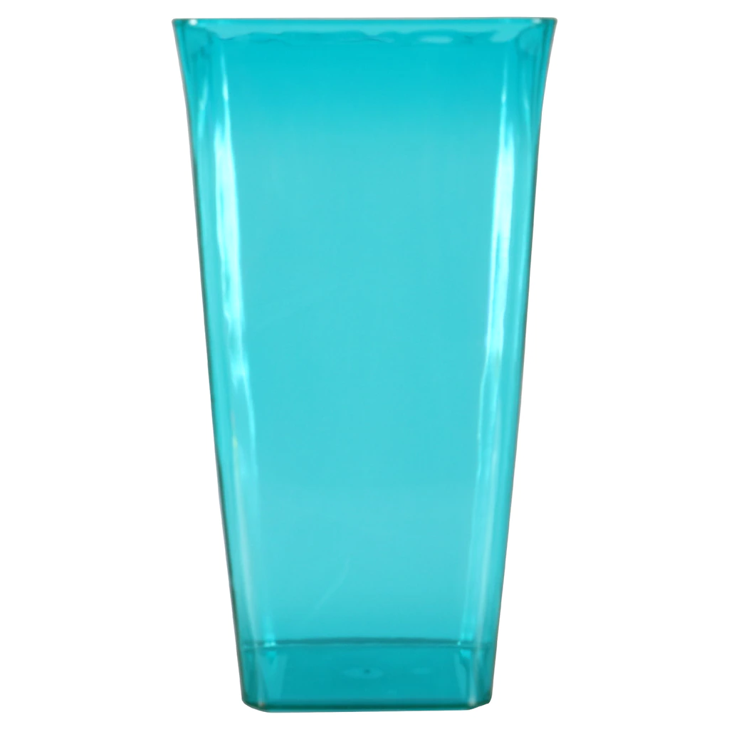 Assortment Details: Colorful Translucent Square Plastic Vases assorted among green, blue, clear, and fuchsia