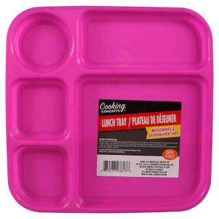 Assortment Details: 10×10-in. Cooking Concepts® 5-Section Lunch Trays assorted among blue, green, pink, orange, and red. Assortment may vary.