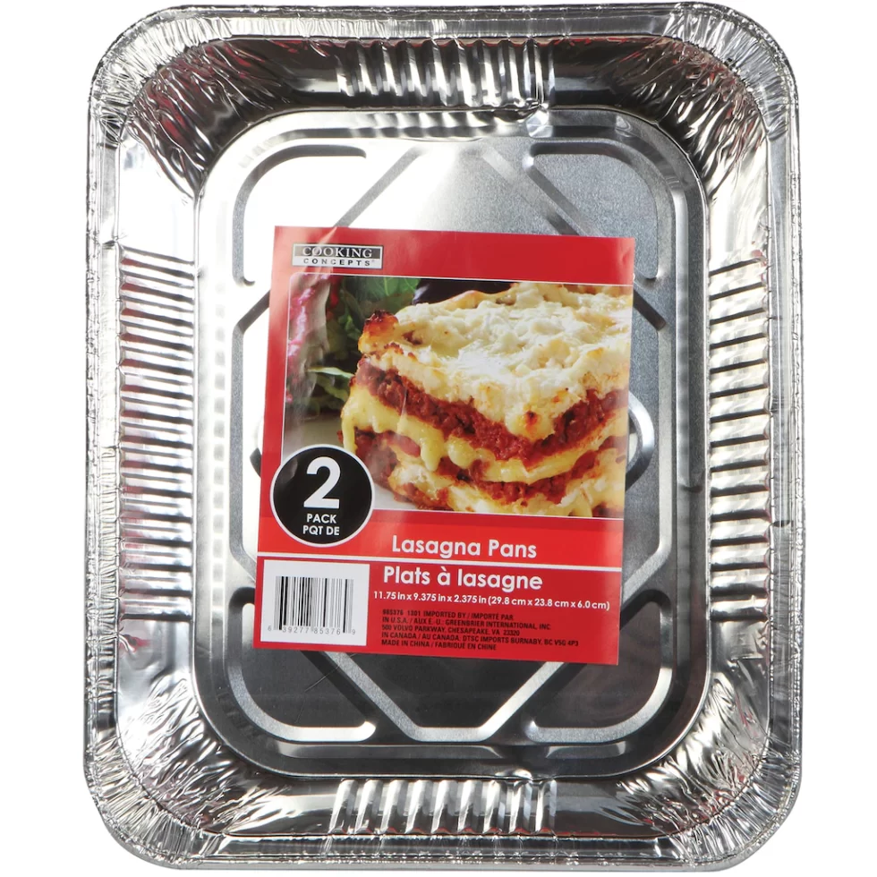 Assortment Details: 11.75×9.375×2.375-in. Cooking Concepts™ Foil Lasagna Pans
