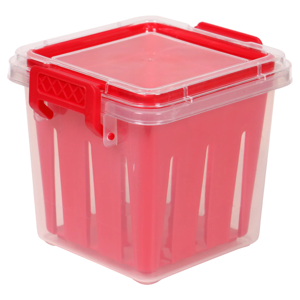 Protect your investments in eating well and keep your fruit and vegetables fresher longer! Each veggie storage container has a slotted colorful inner basket that allows the fruits and veggies to drain excess water. Plus, snap-lock lids lock in the freshness. A must-have storage container for caterers, restaurants, event planners, banquet facilities, and home kitchens.