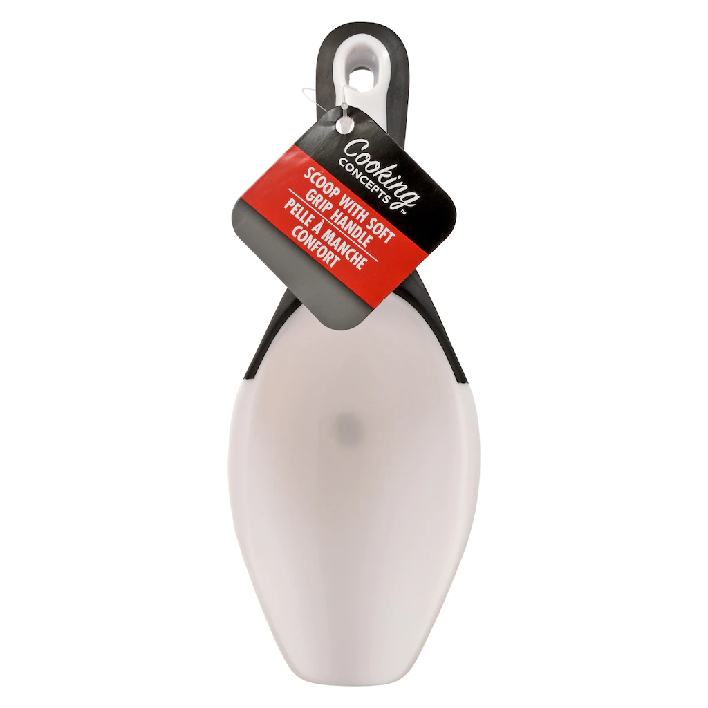 Assortment Details: 8.5×3.2×2.5-in. Cooking Concepts® Scoops with Soft Grip Handles assorted between black and red handles
