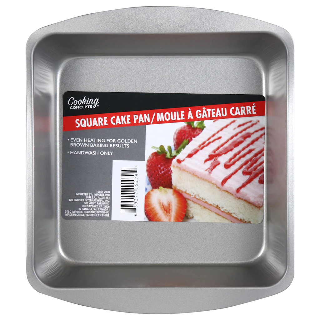 Assortment Details: 7.625×7.625-in. Cooking Concepts® Square Tin Cake Pans