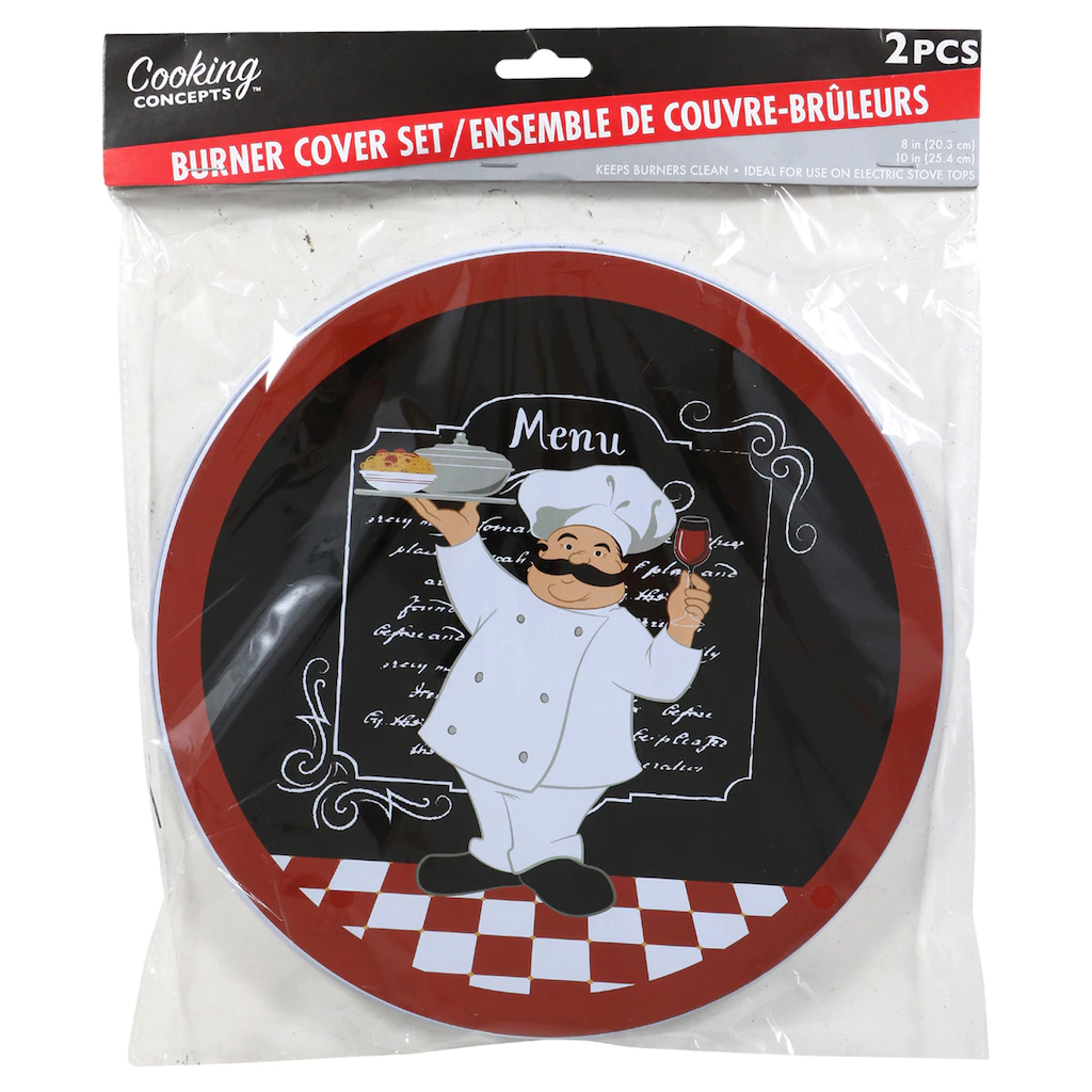 You’ll love these stove burner covers when they are covering your cool burners adding personality and additional function to the top of your stove. They are decorated with the 4 assorted designs shown to coordinate with your home’s unique decor. Each pack includes an 8-in. and a 10-in. burner cover. Assortment may vary.