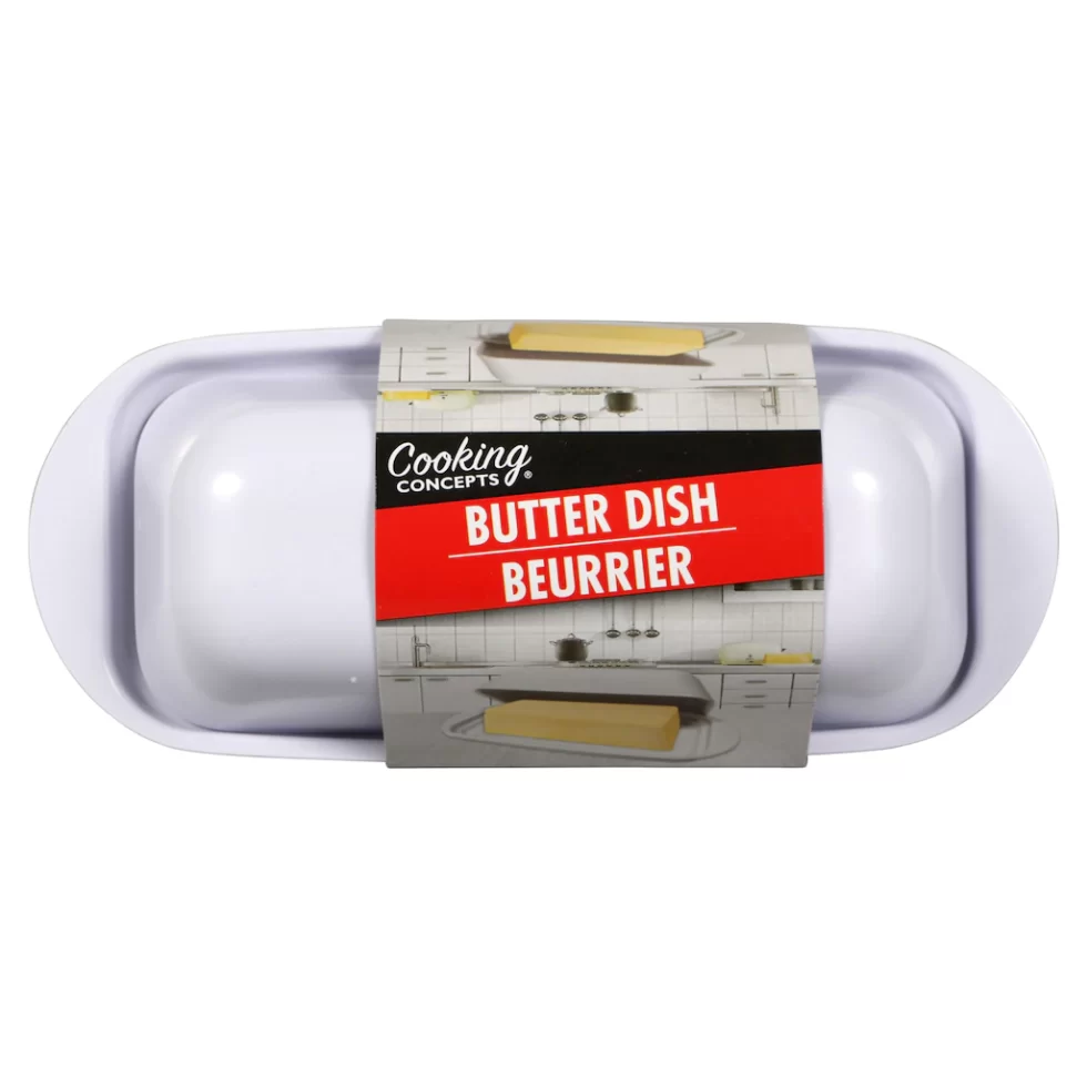 Assortment Details: 7.375×3.25×1.875-in. Cooking Concepts® White Melamine Butter Dishes.