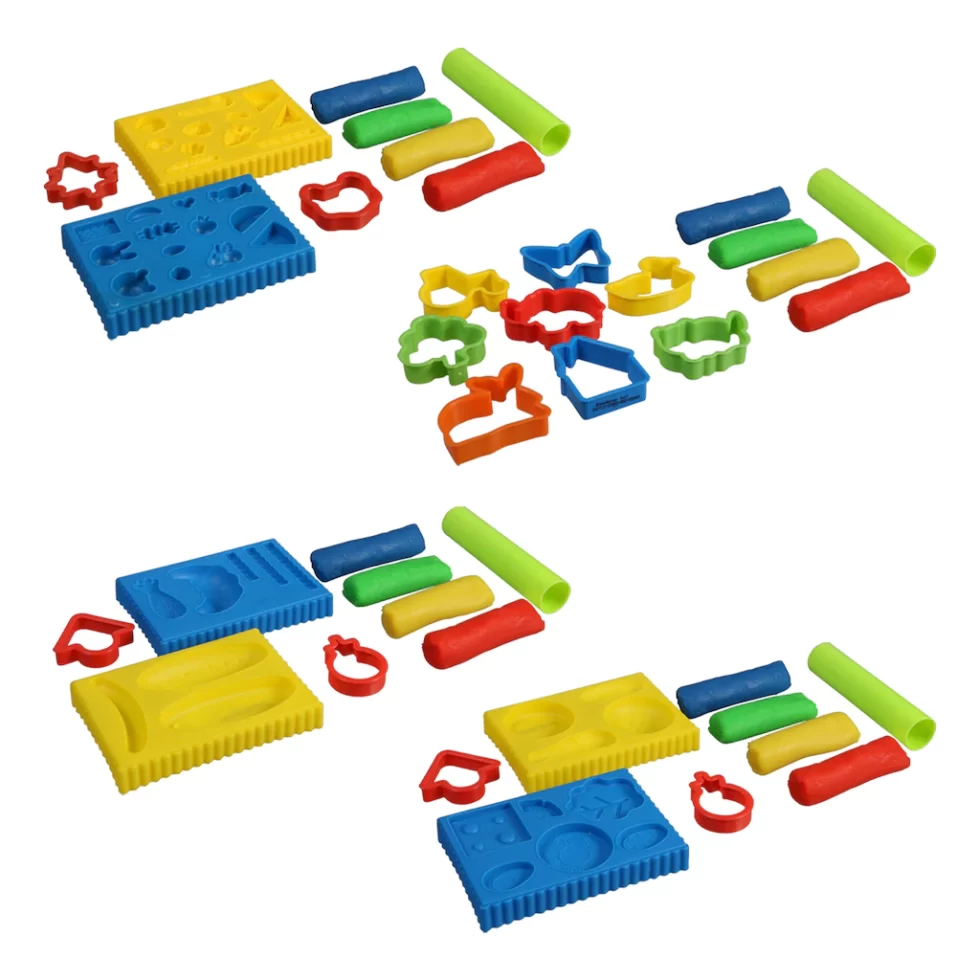 Roll out some fun with these craft dough fun food sets! They are assorted among Birthday, Lunch, Dinner, and Cookies. Each set includes dough, rollers, molds, and cutters. Collect all four and have some well-balanced fun! Ages 3+